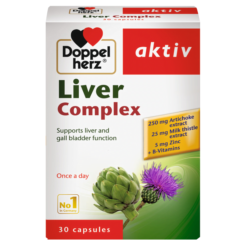 Doppelherz® aktiv Liver Complex ги содржи двете артичока и Магарешки трн за подобрување на дигестијата на тешки оброци како и за заштита и регенерација депонираното црнодробно ткиво. Б-витамините придонесуваат за нормален енергетски метаболизам.